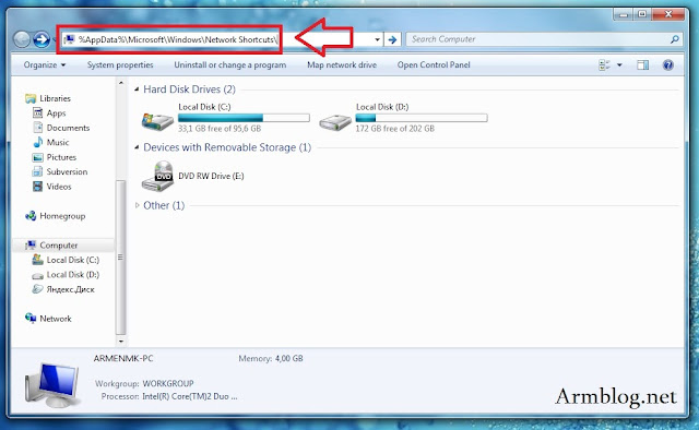 ![]() Windows օպերացիոն համակարգի My Computer-ը ամենահաճախ բացվող պատուհաններից մեկն է: Այստեղից հնարավոր է բացել համակարգչում գտնվող ցանկացած ֆայլ կամ թղթապանակ: Անմիջապես My Computer-ի սկզբնական դիրեկտորիայում չի թույլատրվում ավելացնել նոր թղթապանակներ կամ հղումներ դրանց վրա: Այստեղ հիմնականում տեղադրվում են սկավառակների և արտաքին կրիչների հղումները: Սակայն My Computer-ում կա Network Location բաժին, որտեղ հնարավոր է ավելացնել հղումներ: 1.Բացեք My Computer-ը: 2.Հասցեյի դաշտում գրեք այս տեքստը՝ 3. Սեղմեք Enter և բացված թղթապանակում տեղադրեք այլ թղթապանակի, ֆայլի կամ փաստաթղի վրա հղում (shortcut): 4. Նորից բացեք My Computer-ը և կտեսնեք արդյունքը: Կարող եք այդ թղթապանակում հղումների փոխարեն տեղադրել նաև անմիջապես ֆայլերն ու թղթապանակները, սակայն խորհուրդ չի տրվում դա անել: |